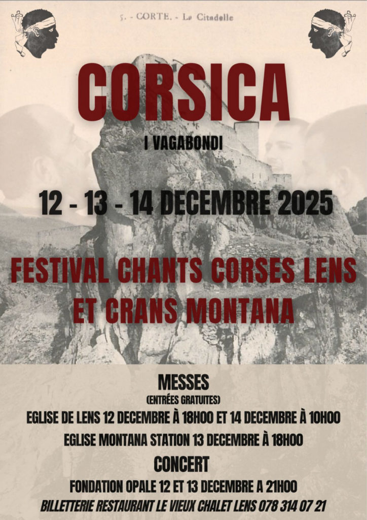 Cette fois-ci, ils chanteront la messe en polyphonie – c’est-à-dire à plusieurs voix -, comme c’est la tradition sur leur île d’origine. Les chanteurs nous ont confié avoir « adoré » leur précédente venue en Valais. Souhaitons-leur d’être à nouveau séduits ! Pour les écouter le temps d’une messe, rendez-vous le 12 décembre à 18h et le 14 décembre à 10h à l’église de Lens, ainsi que le 13 décembre à 18h à l’église de Montana Station. Un concert est également prévu à la fondation Opale, voir affiche.